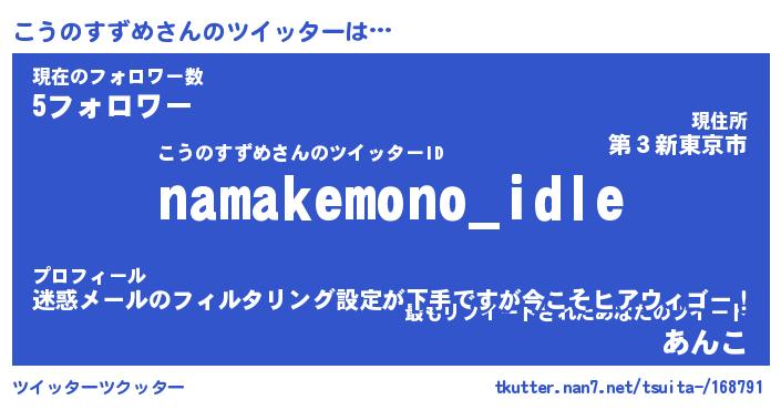 | ヘコむあだ名 | 『こうにゅー』『なまこ酢』 |