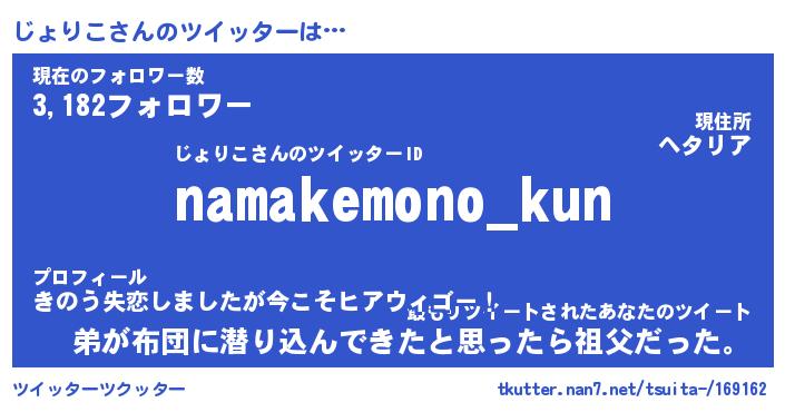 | ヘコむあだ名 | 『じょもー』『なまこ酢』『じょお』 |