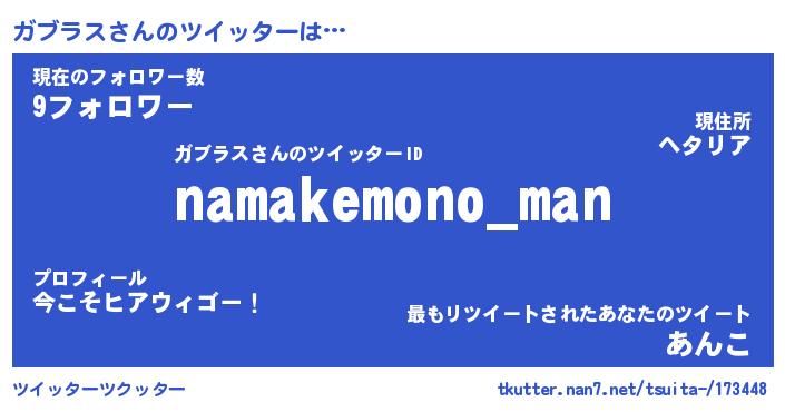 | 男性向けラノベタイトル風あだ名 | 『ガブラスアートオンライン』 |