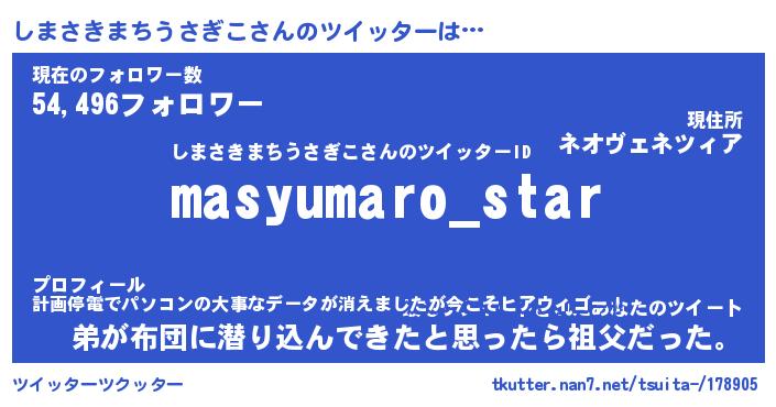 | 欧米人風あだ名 | 『マイケルしまさきまちうさぎこ』 |