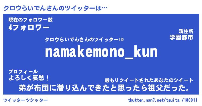 | 2回繰り返すあだ名 | 『クロクロ』『ククロロ』『うろうろ』 |