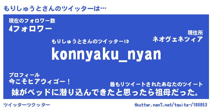 | 男性向けラノベタイトル風あだ名 | 『もりしゅうとの憂鬱』 |