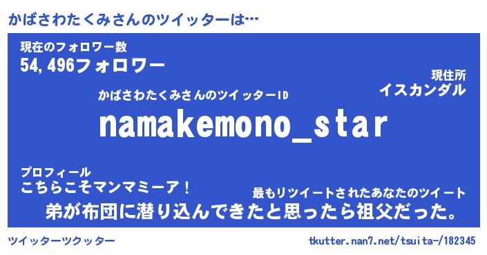| 胡散臭い通販商品みたいなあだ名 | 『億万長者になれるブレスレット…その名も「かばさわたくみ」』 |