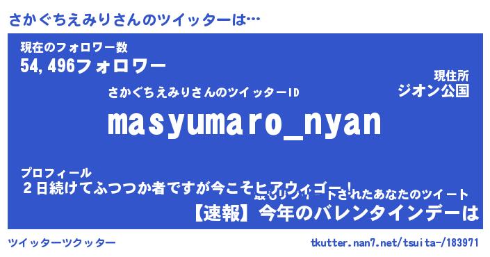 | 伝説のあだ名 | 『不死鳥のスナイパーさかぐちえみり』 |