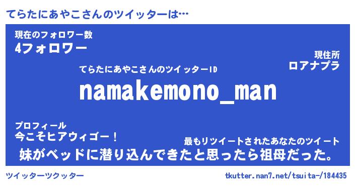 | 男性向けラノベタイトル風あだ名 | 『テラタニアヤコアートオンライン』 |