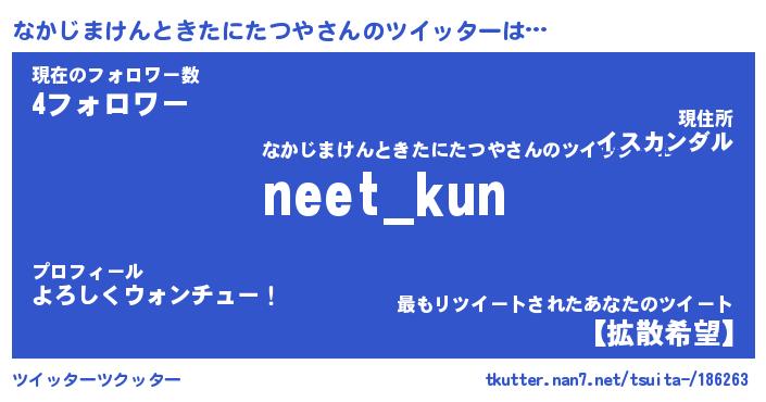| 男性向けラノベタイトル風あだ名 | 『ナカジマケントキタニタツヤアートオンライン』 |