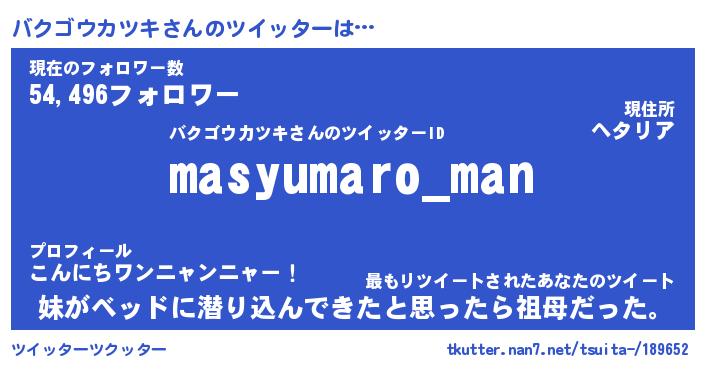 | 男性向けラノベタイトル風あだ名 | 『バクゴウカツキの憂鬱』 |
