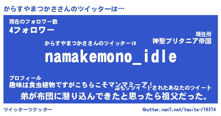 | 男性向けラノベタイトル風あだ名 | 『カラスヤマツカサアートオンライン』 |
