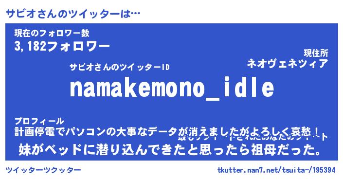 | 自動車の名前っぽいあだ名 | 『サビティマ』『サスラー』『デミサ』 |