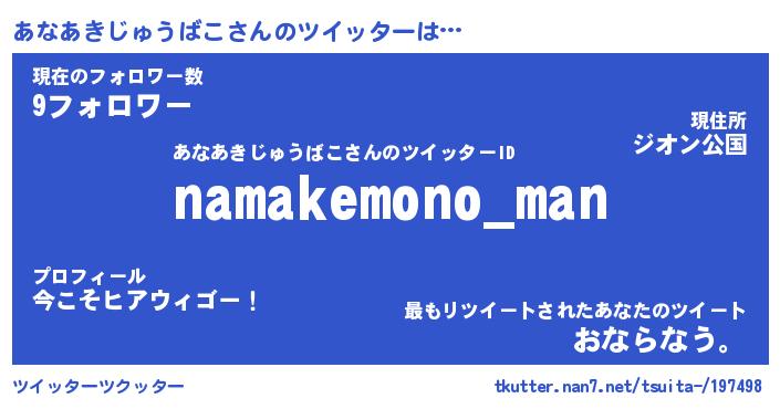 | 男性向けラノベタイトル風あだ名 | 『アナアキジュウバコアートオンライン』 |
