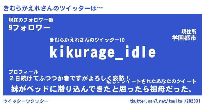| 男性向けラノベタイトル風あだ名 | 『きむらかえれの憂鬱』 |