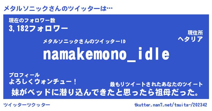 | ヘコむあだ名 | 『メタにゅー』『なまこ酢』『メタを』 |