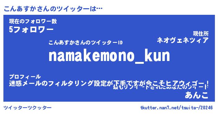 | ヘコむあだ名 | 『こんもー』『なまこ酢』『こんお』 |