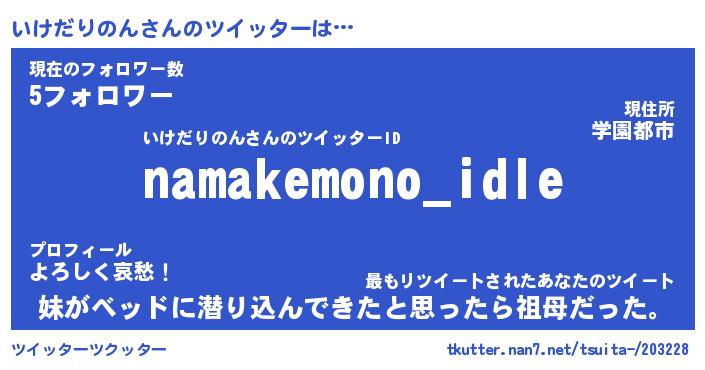 | 男性向けラノベタイトル風あだ名 | 『イケダリノンアートオンライン』 |