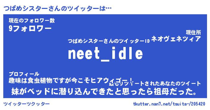 | 男性向けラノベタイトル風あだ名 | 『ツバメシスターアートオンライン』 |