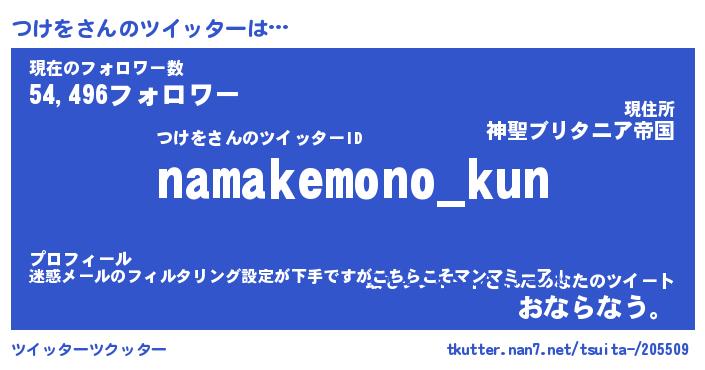 | ポケモン風あだ名 | 『ツケチュウ』『ツケヲダネ』 |