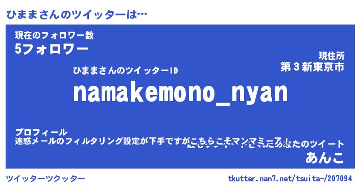 | ファンタジー風あだ名 | 『ヒマフェル』『エターナルヒママー』 |