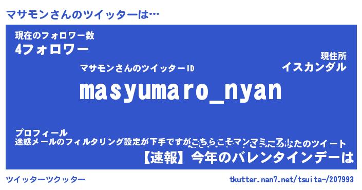 | 意味不明あだ名 | 『ペロリンマサモン』『永久保存マサモン』 |