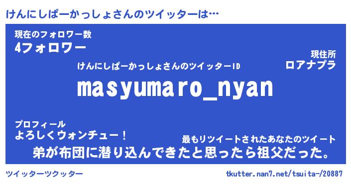 | 欧米人風あだ名 | 『マイケルけんにしぱーかっしょ』 |