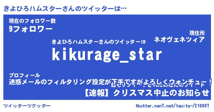 | 男性向けラノベタイトル風あだ名 | 『きよひろハムスターの憂鬱』 |