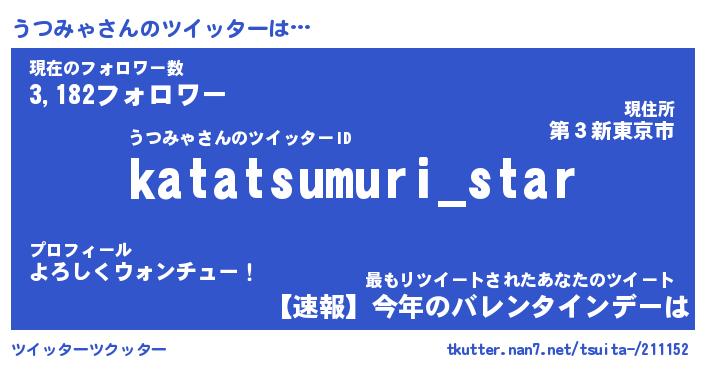 | ファンタジー風あだ名 | 『ウツフェル』『エターナルウツミャー』 |
