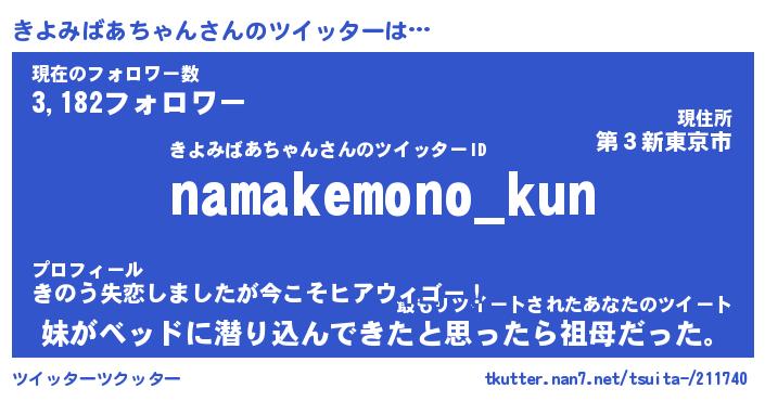 | 男性向けラノベタイトル風あだ名 | 『キヨミバアチャンアートオンライン』 |