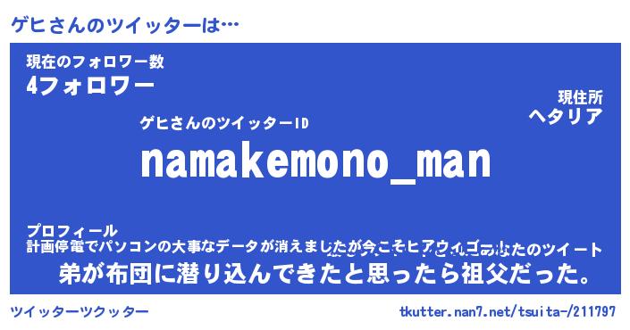 | 自動車の名前っぽいあだ名 | 『ゲヒティマ』『ゲクア』『ヴィッゲ』 |