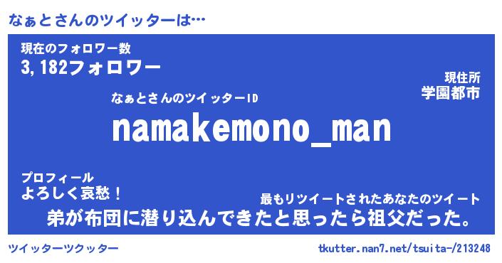 | ヘコむあだ名 | 『なぁにー』『なまこ酢』『なぁお』 |