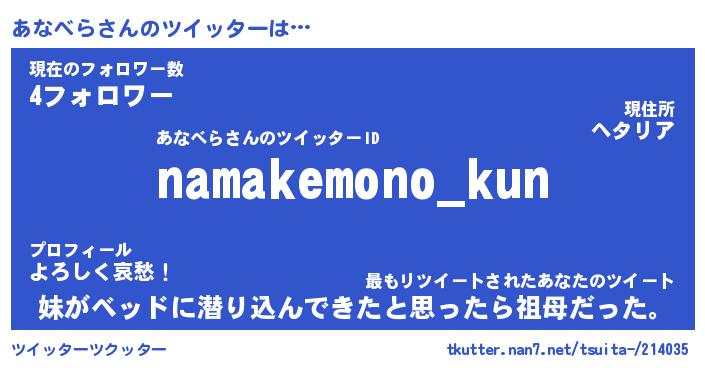 | ヘコむあだ名 | 『あなもー』『つくし』『あなを』 |