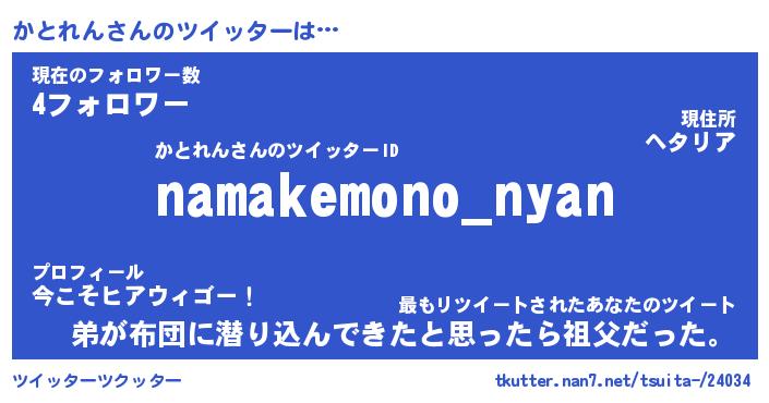 | ヘコむあだ名 | 『かとっふぃ~』『つくし』 |