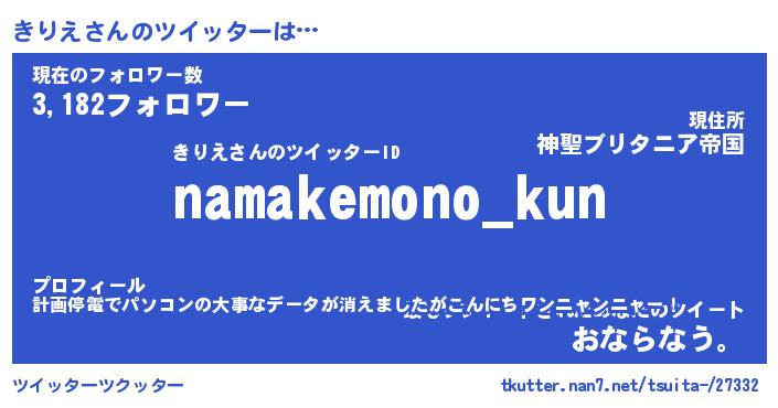 | ヘコむあだ名 | 『きりもー』『酢こんぶ』『きりお』 |