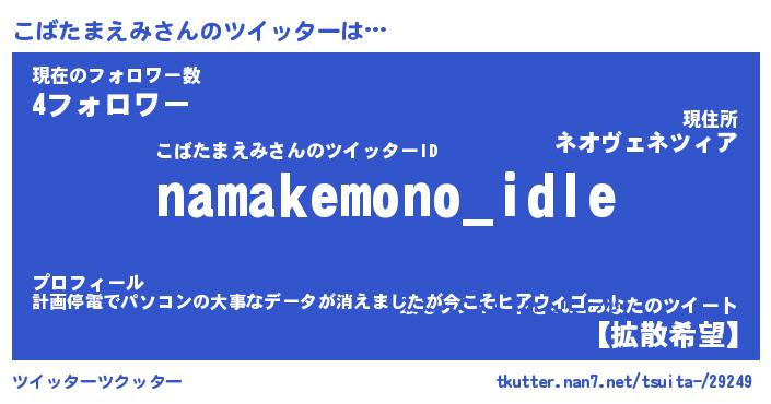 | 伝説のあだ名 | 『封印されし傭兵こばたまえみ』 |