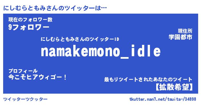 | 男性向けラノベタイトル風あだ名 | 『ニシムラトモミアートオンライン』 |