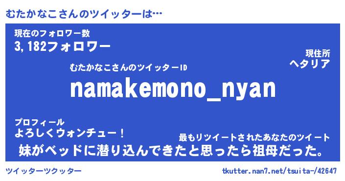 | ヘコむあだ名 | 『むたっふぃ~』『なまこ酢』 |