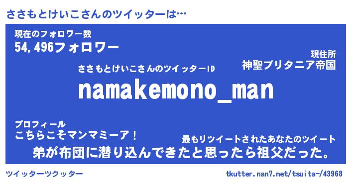 | 男性向けラノベタイトル風あだ名 | 『ササモトケイコアートオンライン』 |
