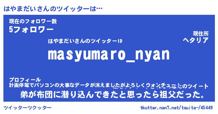 肩書あだ名 | 『はやまだい御曹司』『はやまだい班長』 |
