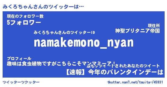 | ヘコむあだ名 | 『みくっふぃ~』『なまこ酢』 |