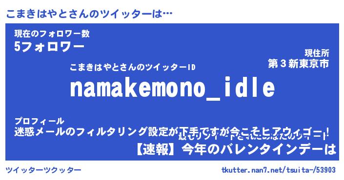 | ヘコむあだ名 | 『こまにゅー』『なまこ酢』 |