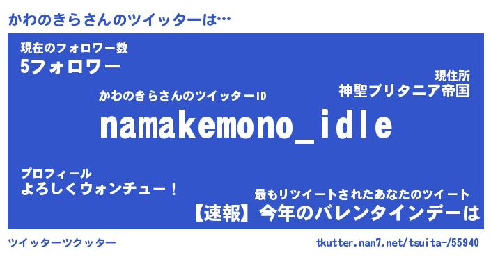 | 男性向けラノベタイトル風あだ名 | 『カワノキラアートオンライン』 |