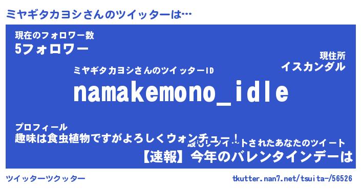 | ヘコむあだ名 | 『ミヤにゅー』『なまこ酢』 |
