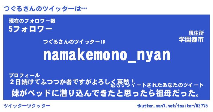 | ヘコむあだ名 | 『つぐっふぃ~』『なまこ酢』 |