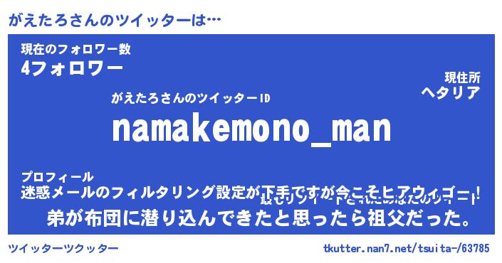 | 意味不明あだ名 | 『ペロリンがえたろ』『永久保存がえたろ』 |