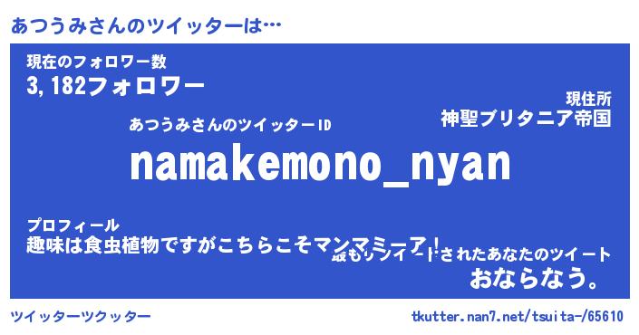 | 意味不明あだ名 | 『ペロリンあつうみ』『永久保存あつうみ』 |