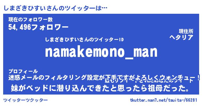 | ヘコむあだ名 | 『しまにー』『レバニラ』『しまを』 |