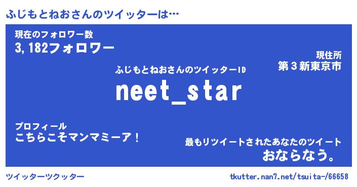 | 男性向けラノベタイトル風あだ名 | 『フジモトネオアートオンライン』 |
