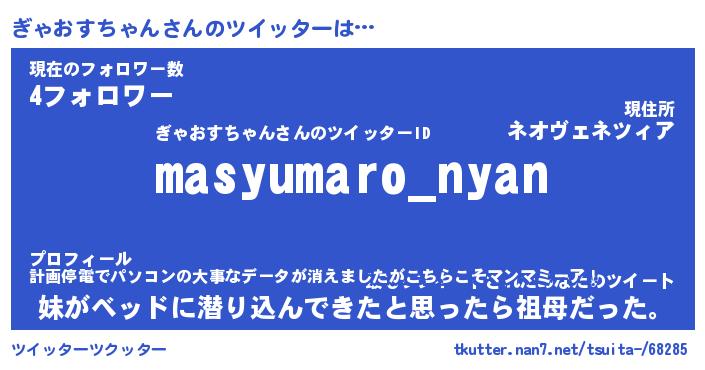 | 肩書あだ名 | 『ぎゃおすちゃん御曹司』 |