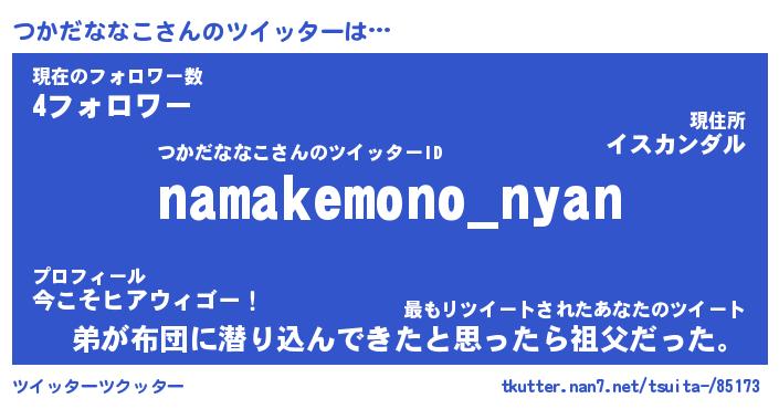 | 男性向けラノベタイトル風あだ名 | 『ツカダナナコアートオンライン』 |