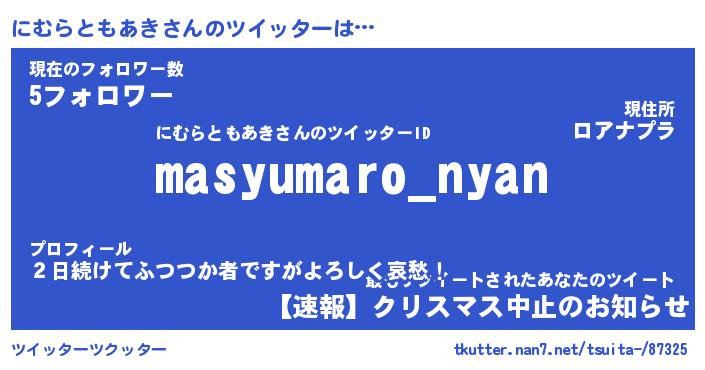| 肩書あだ名 | 『にむらともあき御曹司』 |
