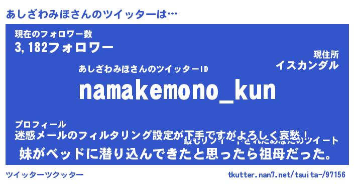 | ヘコむあだ名 | 『あしもー』『酢こんぶ』 |