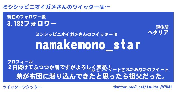 | 男性向けラノベタイトル風あだ名 | 『ミシシッピニオイガメアートオンライン』 |